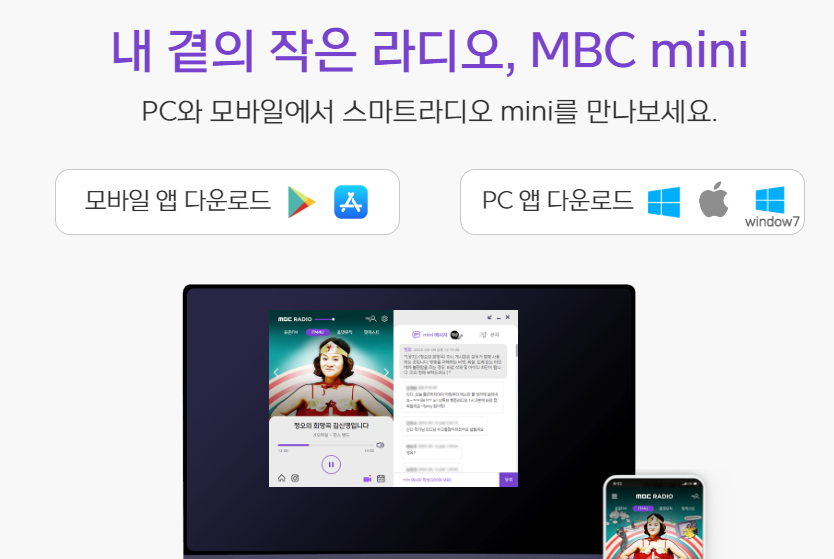아래에서 MBC 라디오 미니를 설치하세요.