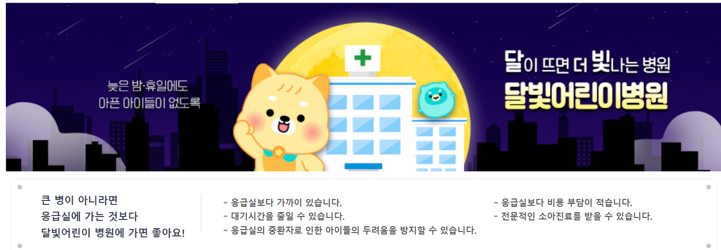 달빛 어린이병원에서 우리 아이 빨리 진료 보세요.